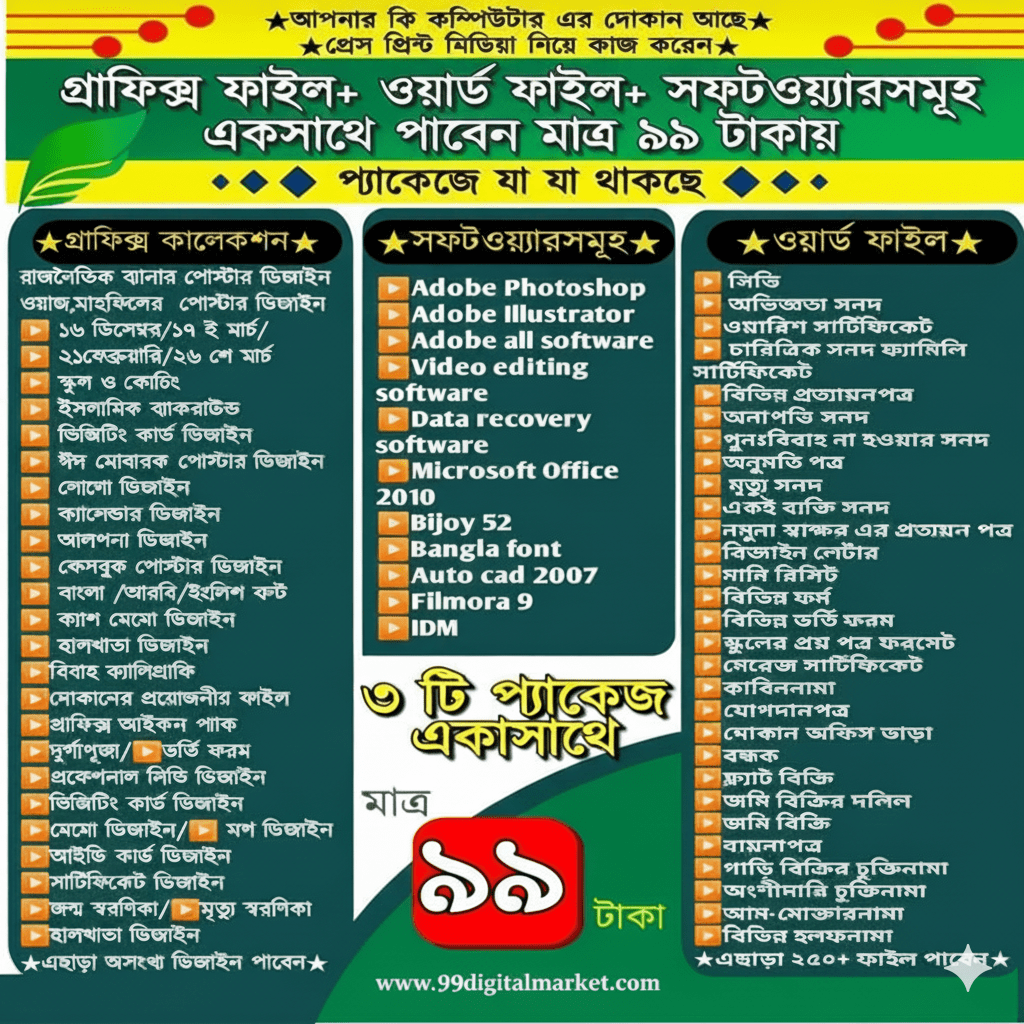 🎯 গ্রাফিক্স ডিজাইনার, কম্পিউটার দোকান মালিক বা প্রেস মিডিয়া পেশাজীবীদের জন্য পারফেক্ট এক প্যাকেজ!